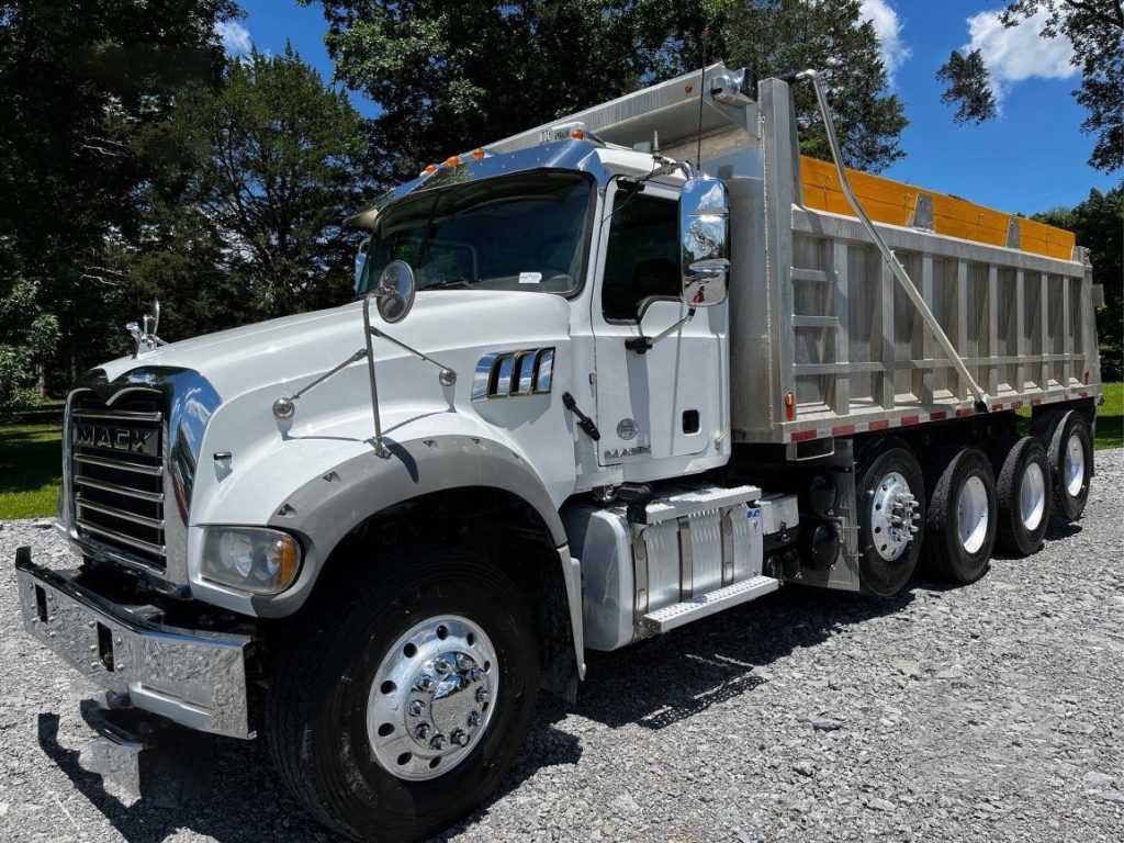 2016 MACK Granite GU713 Quad Axle Dump TruckMACK MP8, Allison Automatic Transmission, Engine Brake, All Aluminum Wheels, 22.5 Tires, Roger’s 20′ Aluminum Body, Electric Tarp, Air Lift 1st and 4th Axle, Steerable 1st Axle, Hendrickson M Ride Spring Suspension, 20K Lbs. Front, 46,720 Rears, 233,407 MI.,VIN Number: 1M2AX07C2GM030136 Cylinders: 6 Transmission: Allison Automatic Odo Shows: 233,376 Miles