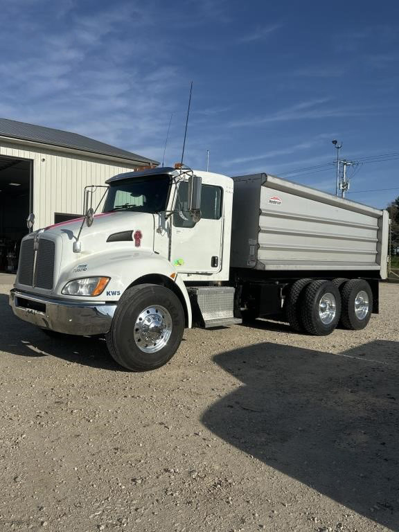 ’17 Kenworth Construction T370 dump truck shows 416,715 miles, auto trans, 6 alum rims, 4 new tires, new box, 33001 GVWR per consignor- 3,000 miles on inframe overhaul consisting of new 8.9 cummins & new hyd pump VIN: 2NKHLJ9X8HM175050